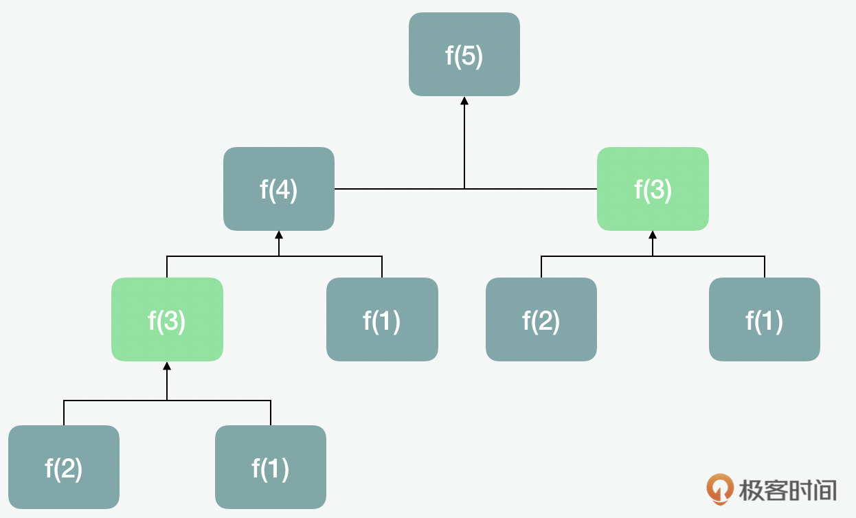 但是这里有一个问题,当我们在计算fibRecursive(5)的时候,fibRecursive(3)被计算了两次。