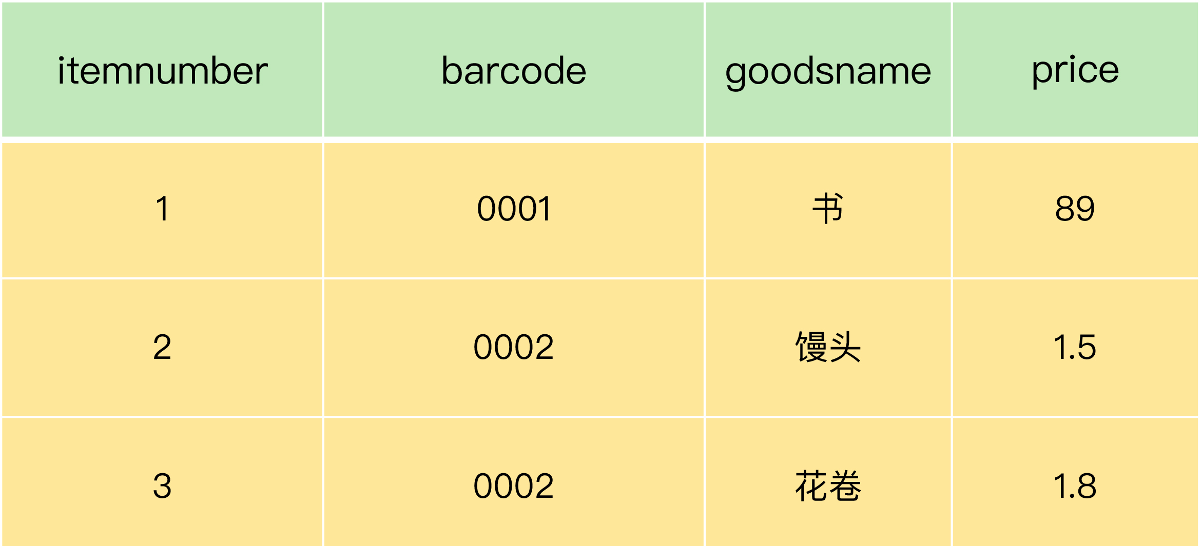 从这个表中,我们可以看到,barcode、goodsname和price都不能确保唯一性,所以没有任何一个字段可以做主键,因此,我们可以自己添加一个字段itemnumber,并且每次添加一条数据的时候,要给值增加1。怎么实现呢?我们就可以通过定义自增约束的方式,让系统自动帮我们赋值,从而满足唯一性,这样就可以做主键了。