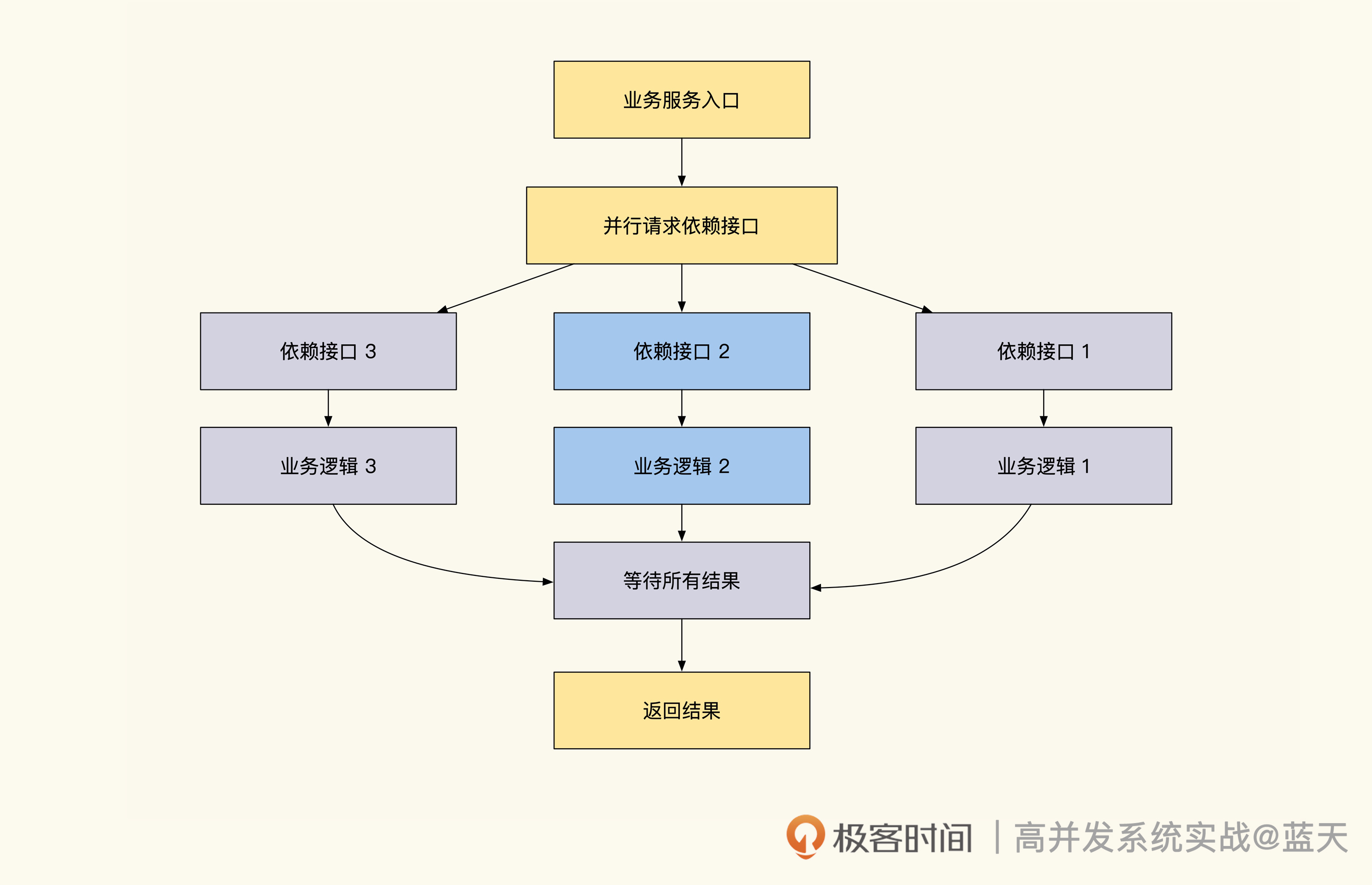 为了提高性能,有些业务对依赖资源做了优化,通过并行请求依赖资源的方式提高接口响应速度。具体的实现请看下图:
