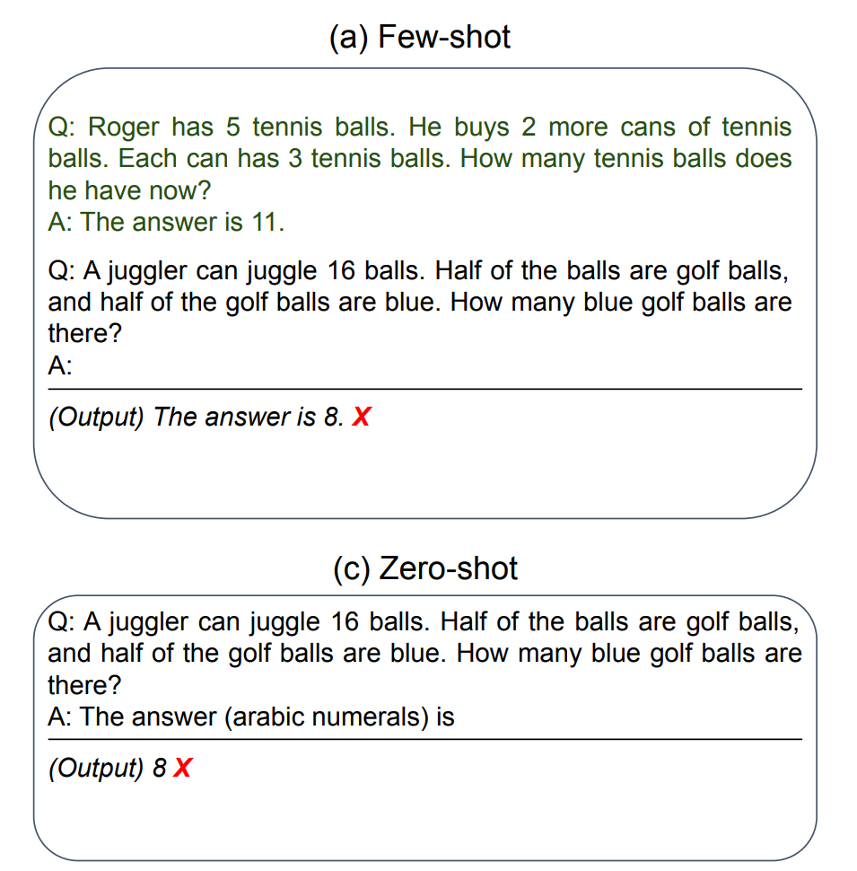 - 在Few-Shot学习设置中,模型会被给予几个示例,以帮助模型理解任务,并生成正确的响应。