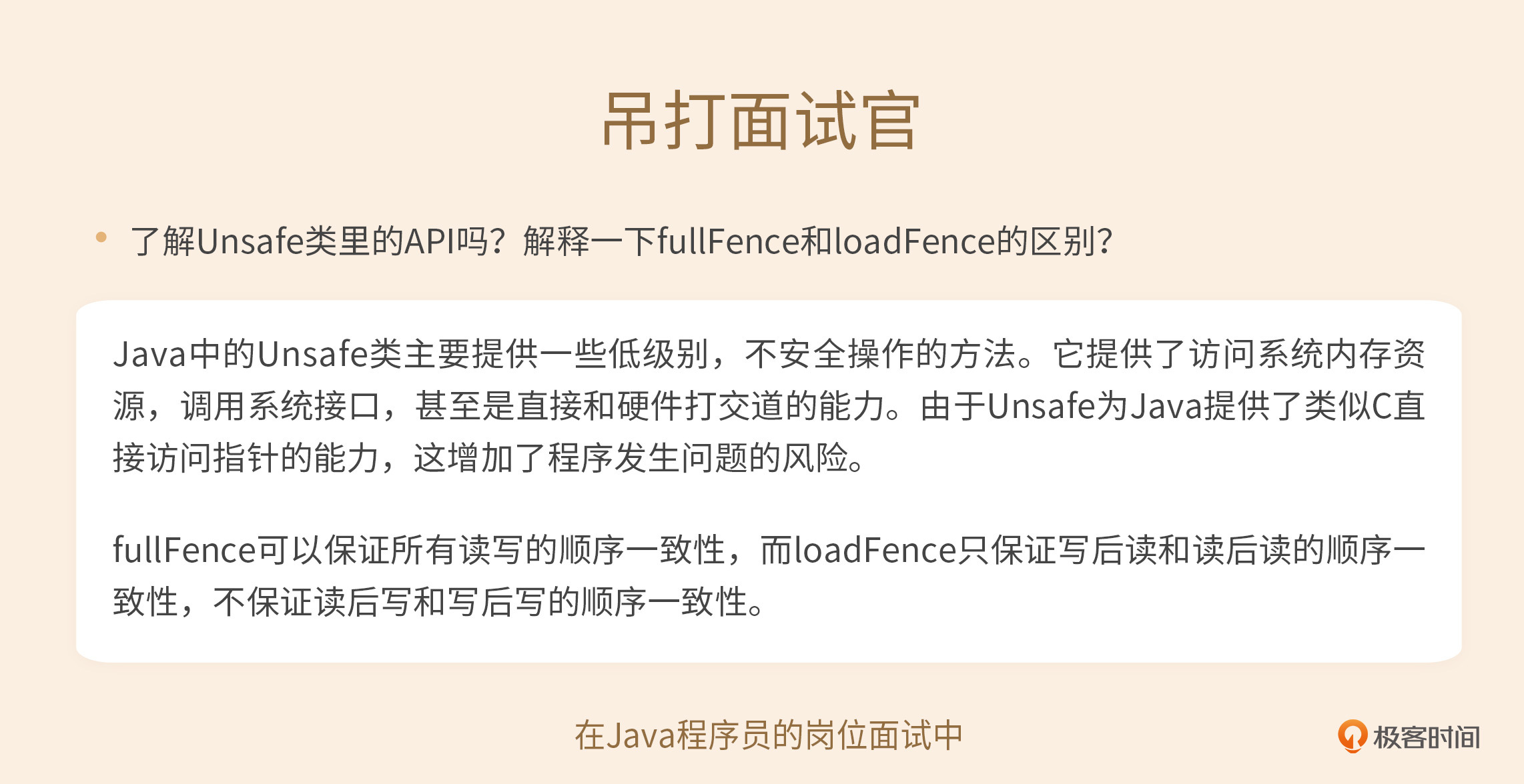 假如以下代码是Java代码,你可以看到,代码中采用了full fence来保证缓存一致性。请阅读Java的相关API文档并思考,fullFence是否合理?如果不合理,应该使用哪个API对它进行替代呢?欢迎在留言区分享你的想法,我在留言区等你。