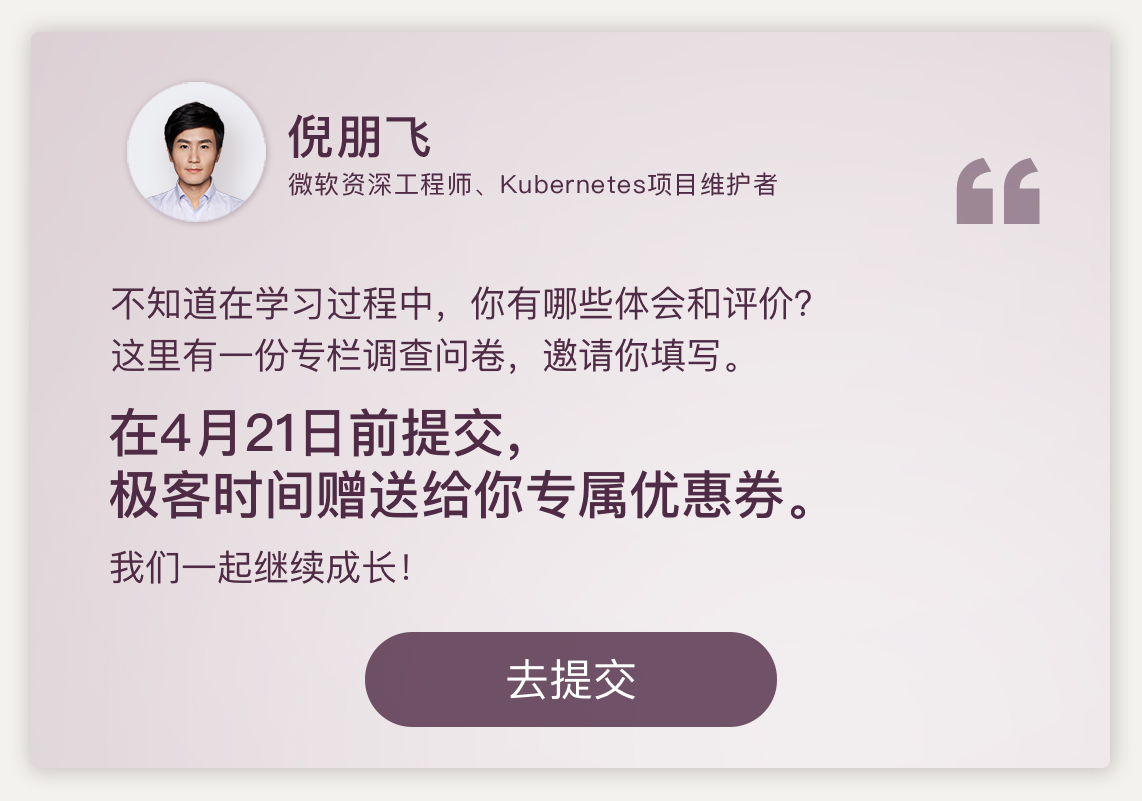 最后,非常感谢你的订阅,希望这个专栏可以真正对你有所帮助。专栏结束了,但我们的交流还会在留言区继续。当然,我也非常希望可以听听,你在学习这个专栏时都有哪些感想,也欢迎你在留言区写下你的收获。