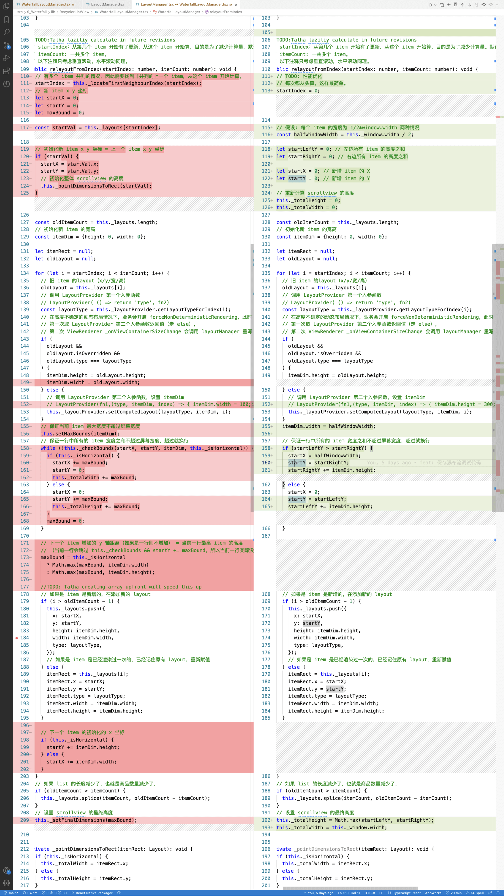 而 ViewRenderer 根据 this._layouts 把你的列表项,渲染到了指定的位置上。因此,我们要想实现双列瀑布流布局,就得理解和修改 relayoutFromIndex 方法。
