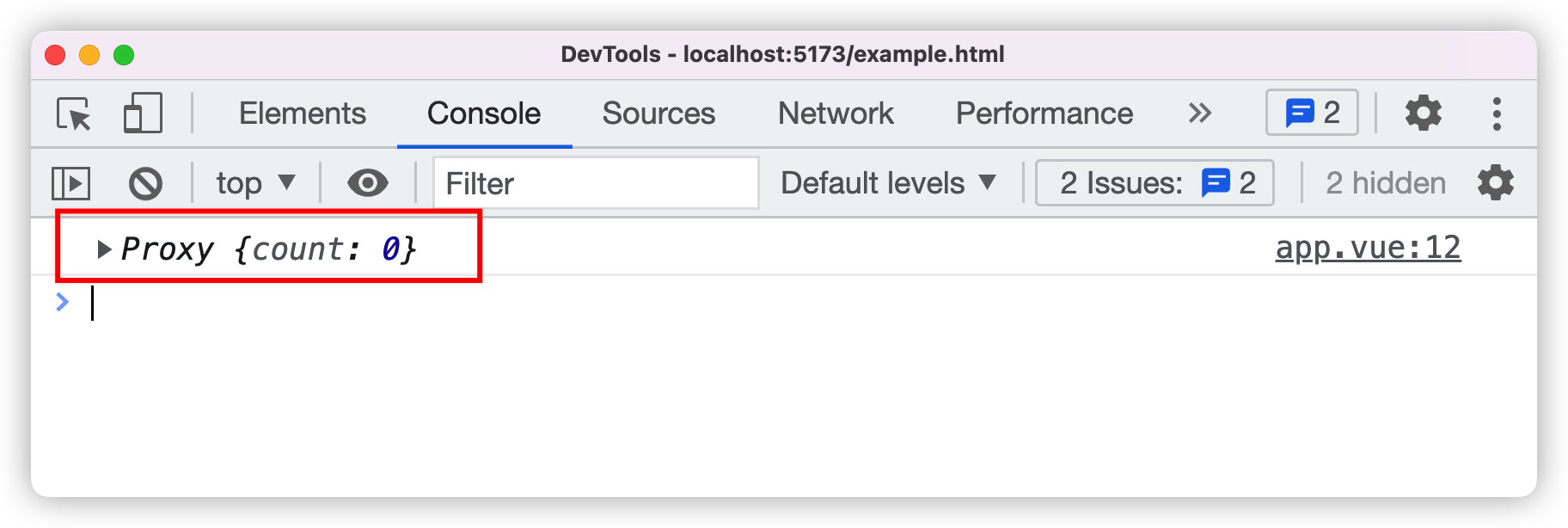 以上代码通过Vue.js 3编译在浏览器上运行后,在控制台打印结果如下图所示: