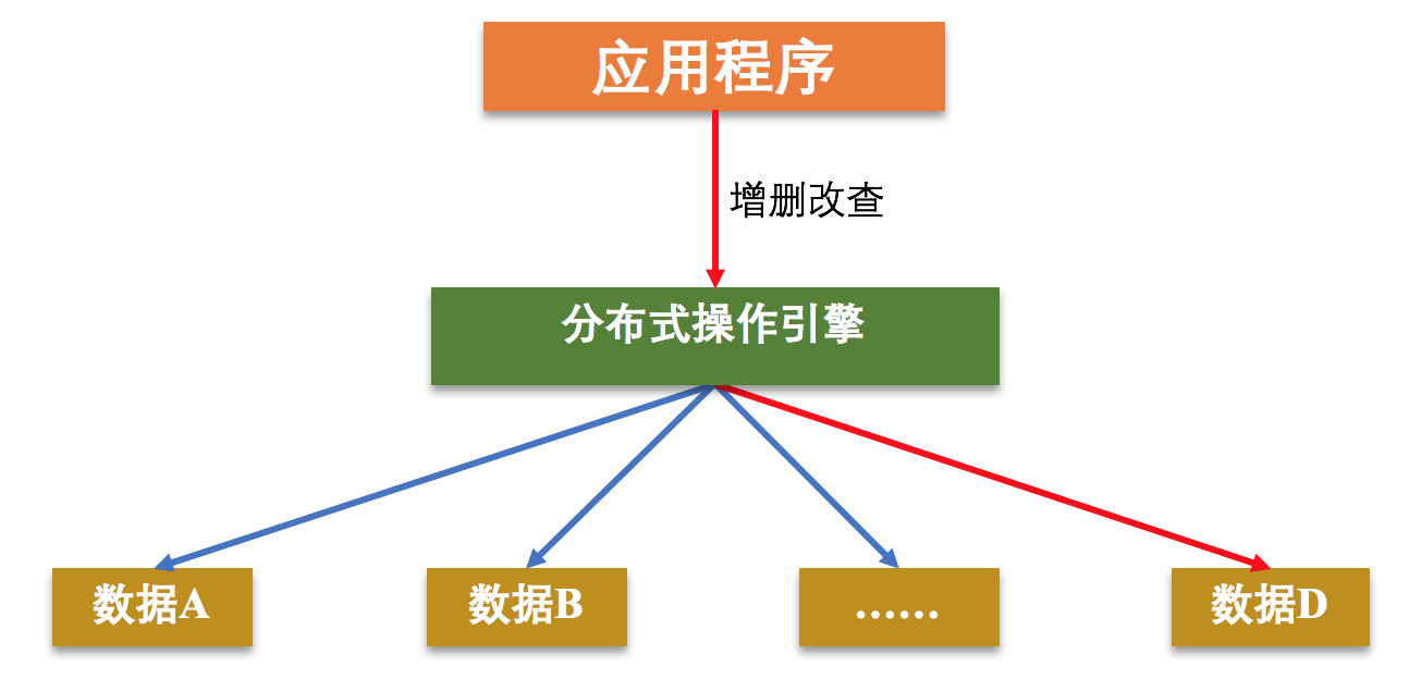 顾客到商店购物时,导购会根据顾客想要购买的商品引导顾客到相应的货架,然后顾客从这个货架上获取要购买的商品,完成购物。这里的顾客就是图中的应用程序,导购就相当于分布式操作引擎,它会按照一定的规则找到相应的货架,货架就是存储数据的不同机器节点。