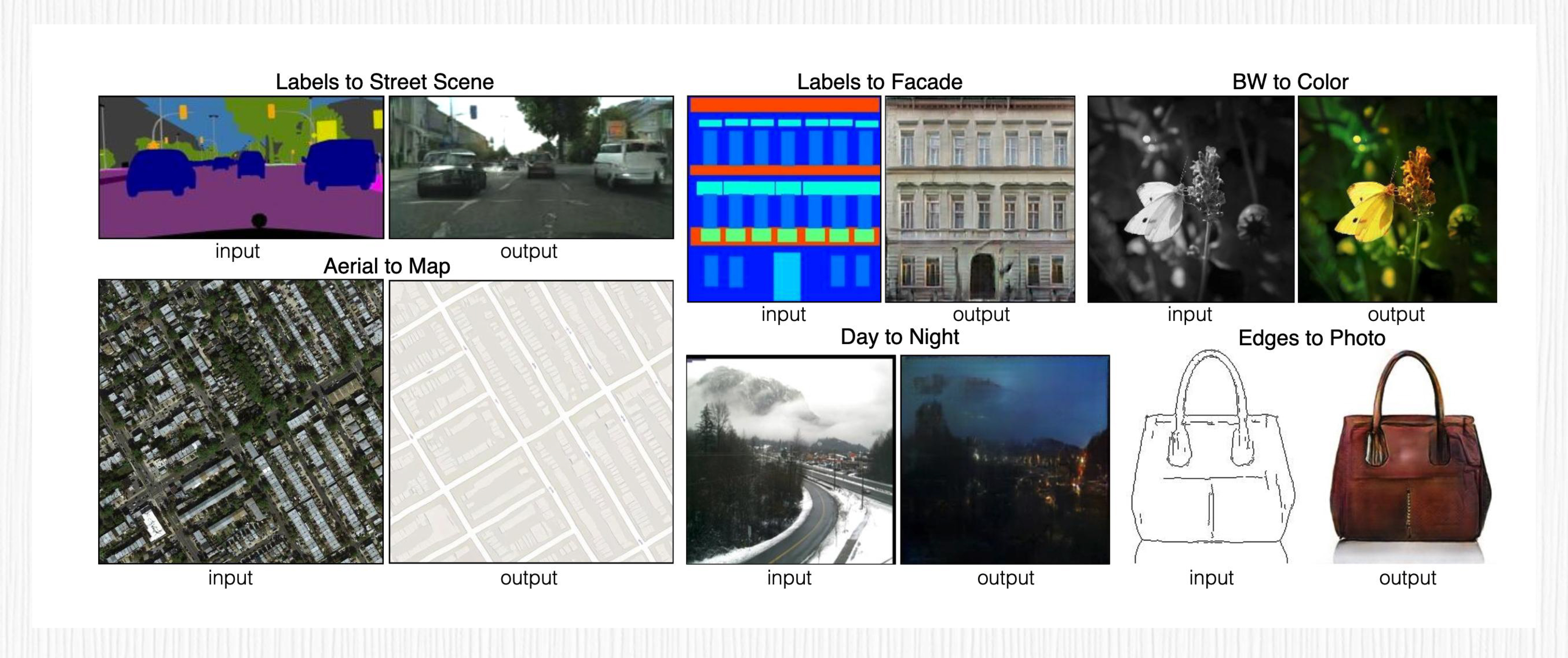 Pix2Pix 系列工作延续了cGAN的思想,将cGAN的条件换成了与原图尺寸大小相同的图片,可以实现类似轮廓图转真实图片、黑白图转彩色图等效果。是不是听起来很熟悉?没错,就是GAN时代的ControlNet!