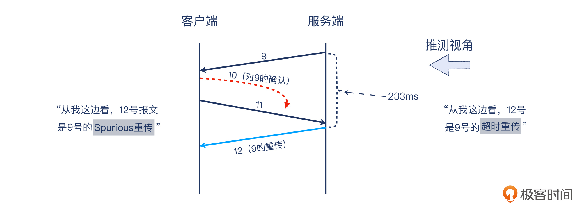 补充:这个建议也是基于概率。Spurious重传大部分时候不是问题,只有极少数情况下是问题,所以不去重点关注它是“划算的”。相关的案例,会在专栏的后半程里介绍。