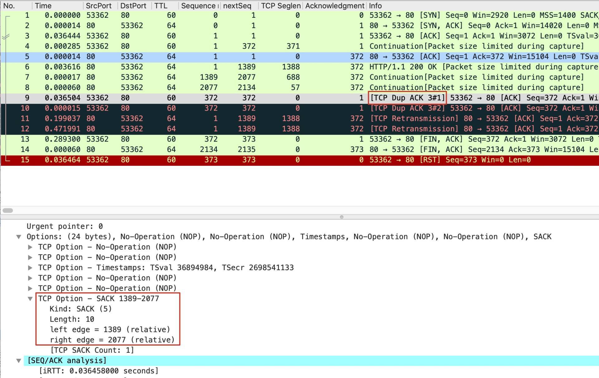 我们来看看这两个DupAck的详情,先看第一个: