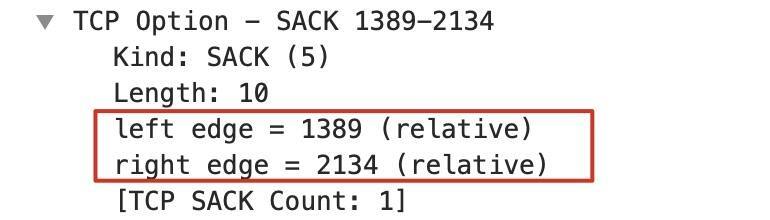 类似的,我们看一下第二个重复确认报文(示例文件的10号报文)的SACK详情: