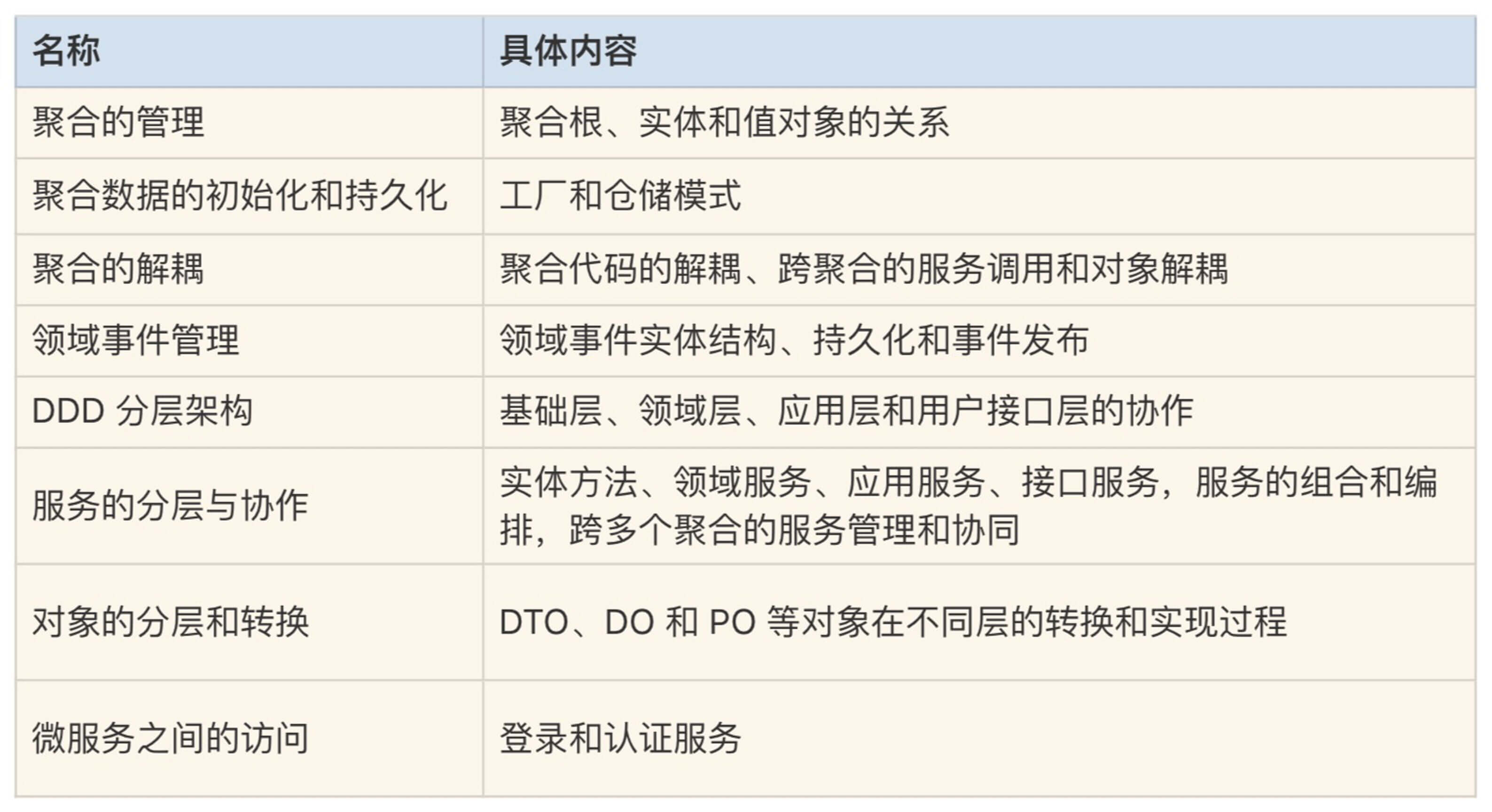总结 今天我们了解了用DDD开发出来的微服务代码到底是什么样的。你可以将这些核心设计思想逐步引入到项目中去,慢慢充实自己的DDD知识体系。我还想再重点强调的是:由于架构的演进,微服务与生俱来就需要考虑聚合的未来重组。因此微服务的设计和开发要做到未雨绸缪,而这最关键的就是解耦了。
