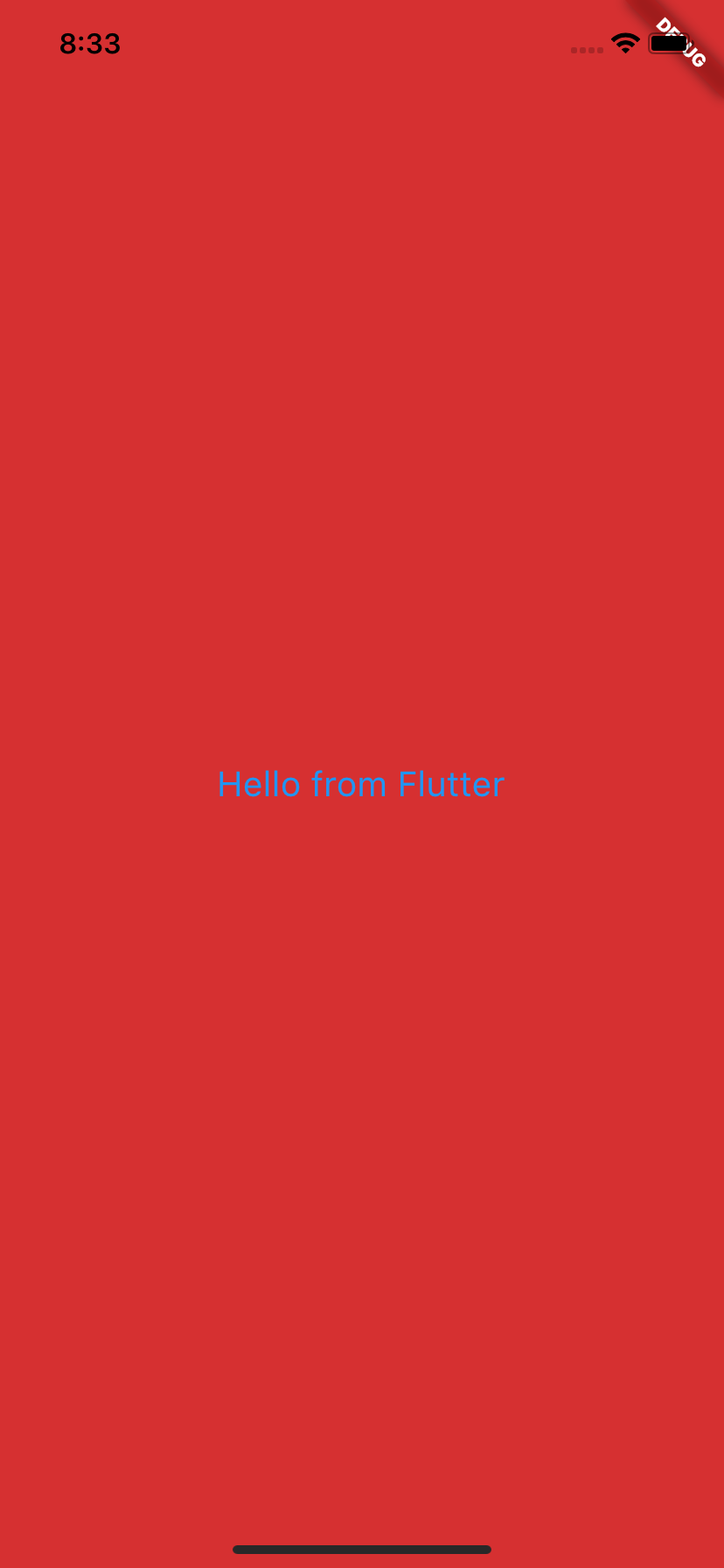 最后点击运行,一个写着“Hello from Flutter”的全屏红色的Flutter Widget也展示出来了。至此,iOS工程的接入我们也顺利搞定了。