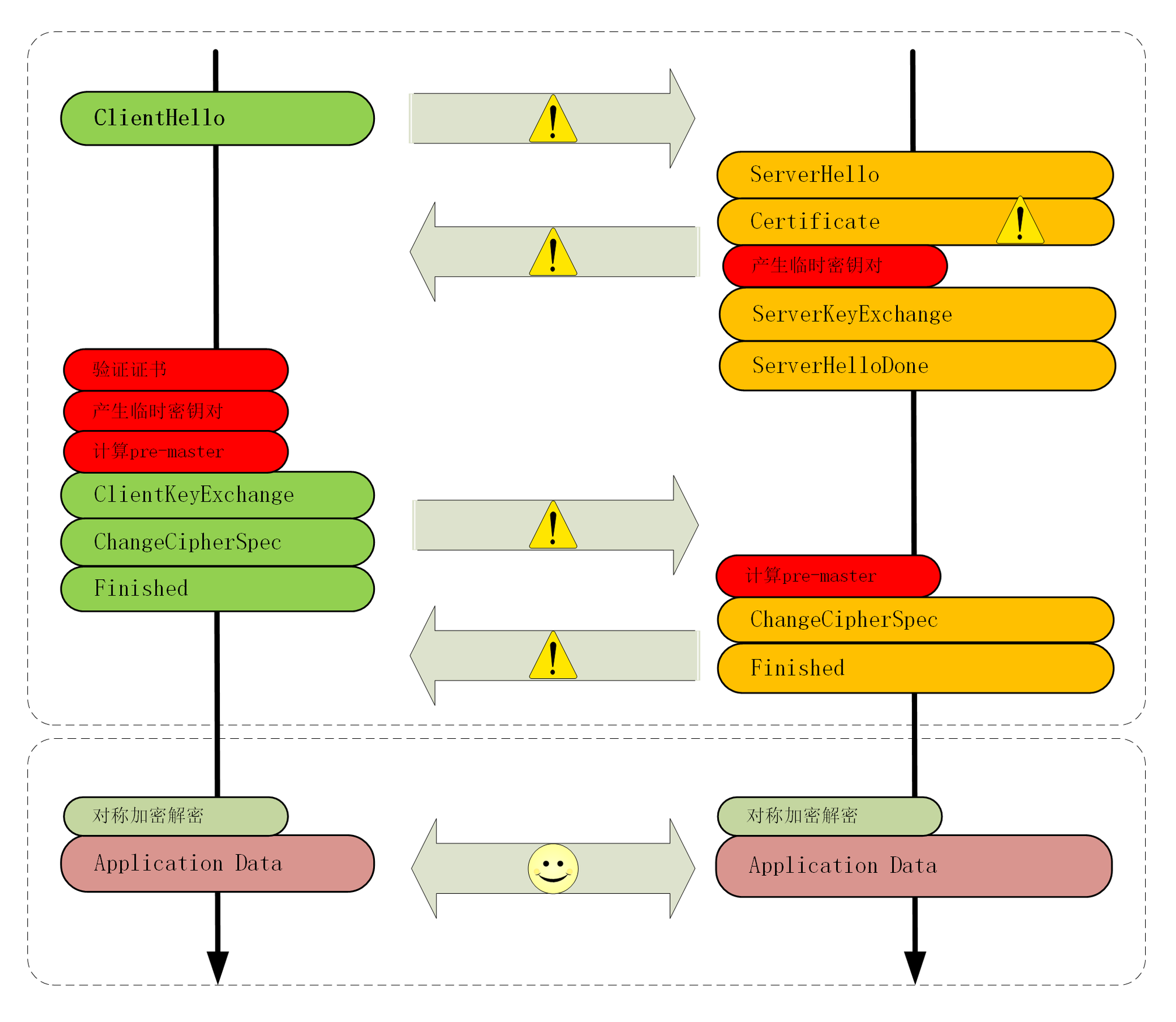 从刚才的TLS握手图中你可以看到影响性能的一些环节,协议优化就要从这些方面着手,先来看看核心的密钥交换过程。