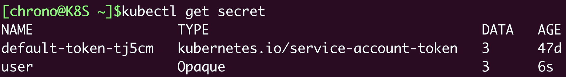 1 | kubectl create secret generic user --from-literal=name=root $out |