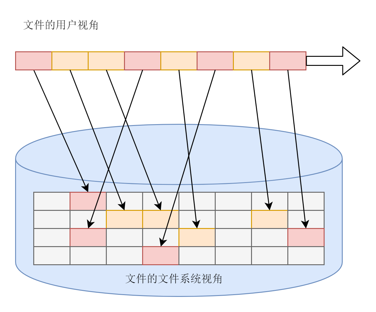 第一点,文件系统要有严格的组织形式,使得文件能够以块为单位进行存储。这就像图书馆里,我们会设置一排排书架,然后再把书架分成一个个小格子,有的项目存放的资料非常多,一个格子放不下,就需要多个格子来存放。我们把这个区域称为存放原始资料的仓库区。