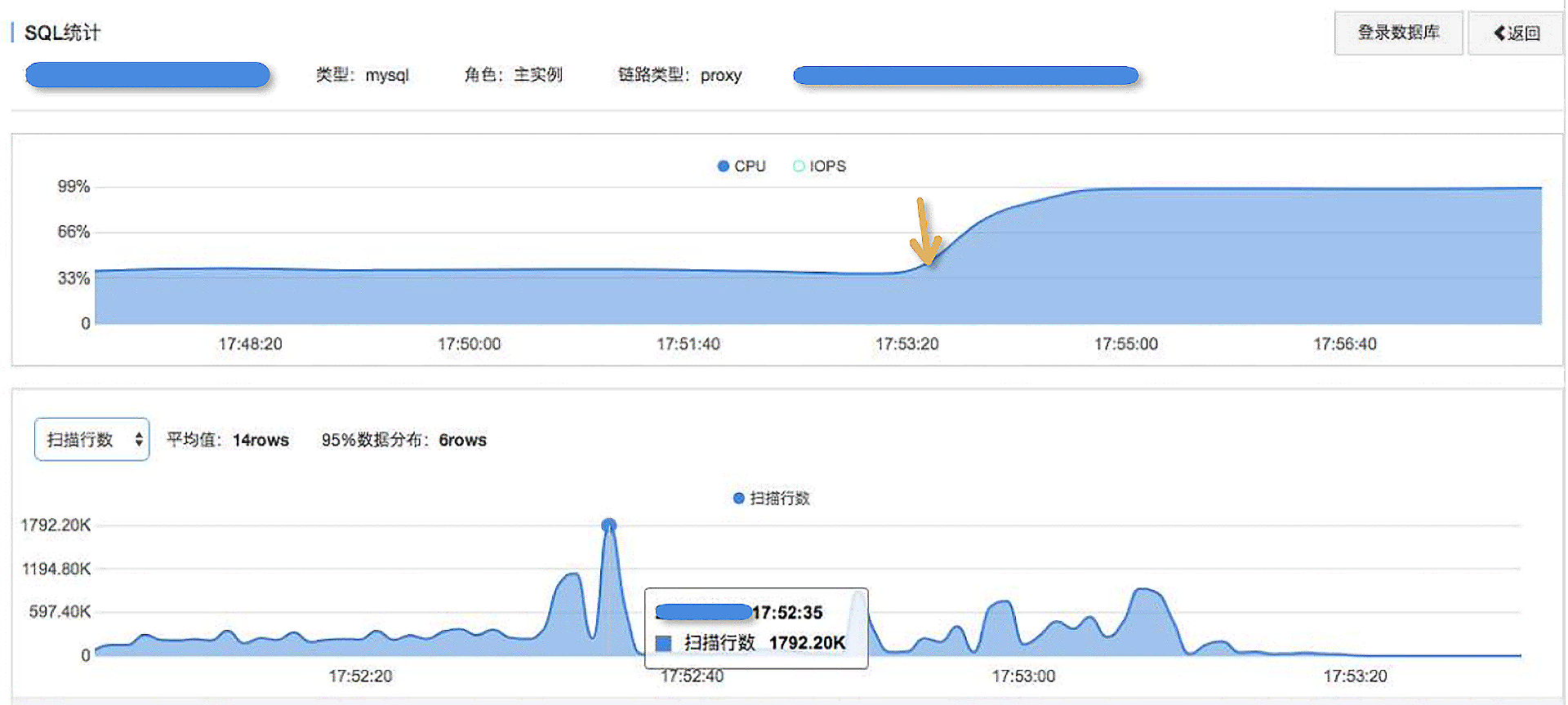 当然,在故障恢复之后,我们需要找到引起故障的真正原因,因为只有定位到了根本原因,你才能避免下一次出现同样的故障。针对这次故障中的实例,已经启用了RDS产品提供的SQL洞察和审计功能,我们使用这个功能对故障期间执行的SQL做了分析。我们分析了故障发生前,数据库中扫描行数、返回行数看起来比较高的一些SQL,并对这些SQL进行了一些优化。
