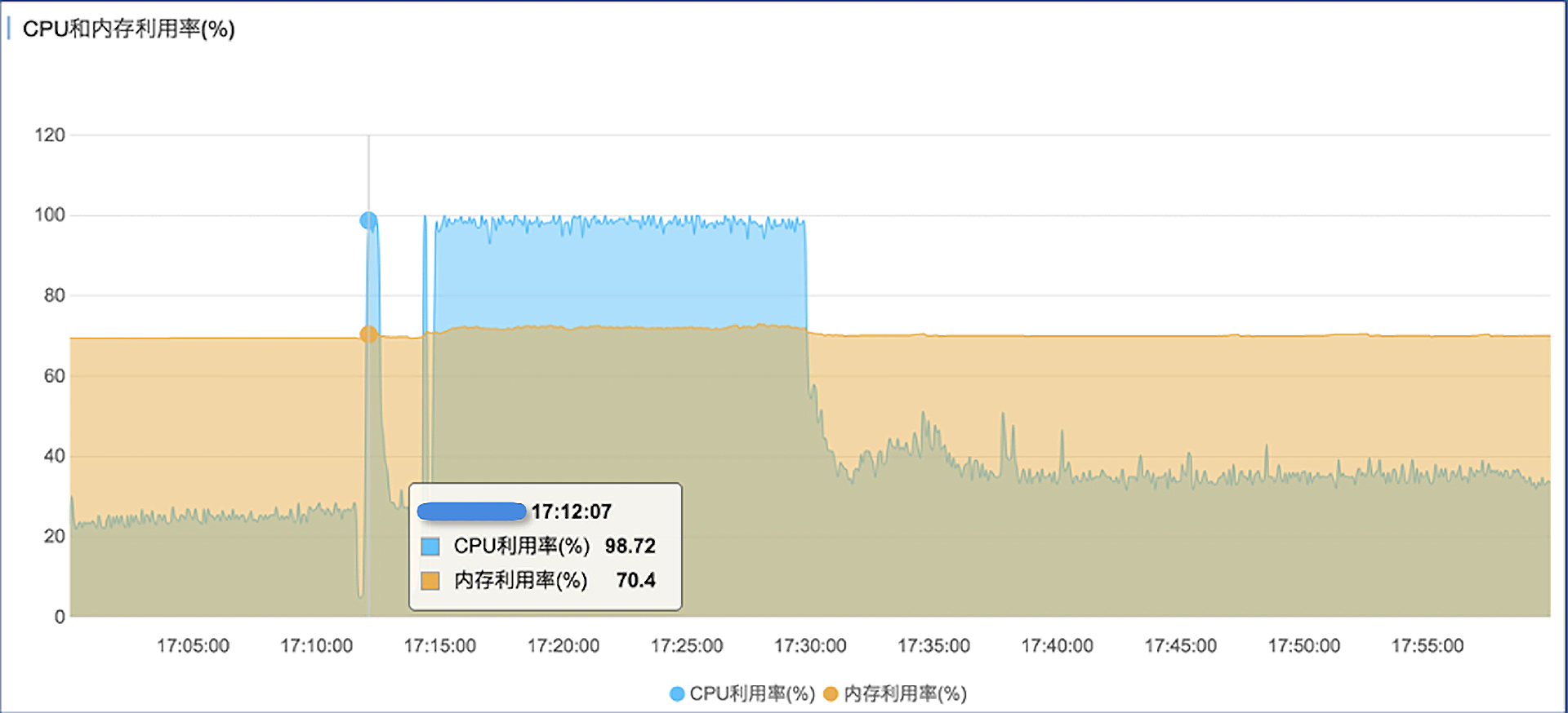 这个客户的Redis没有在我们的服务范围内,因此我们也根本没有想过这方面的问题。听到工程师的反馈后,我们立刻查看了Redis的监控。在数据库流量下跌的同一个时间,Redis的CPU使用率有大幅度的上涨,最高达到了100%。