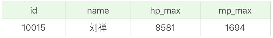 1 | SELECT id, name, hp_max, mp_max FROM heros_with_index WHERE name = '刘禅' |