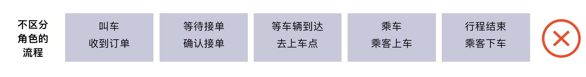 这样做的话,你也很难找到,针对司机的角色需要做的优化点,也很难找到为乘客的角色需要做的优化点。最后,会导致你的这份用户体验地图在工作中没啥实际的作用。