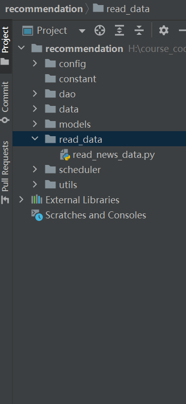 我们在recommendation-class项目里新建一个叫read_data的目录,以后读取数据都用这个目录,然后再在里面新建一个叫read_news_data.py的文件,新建之后目录格式如下。