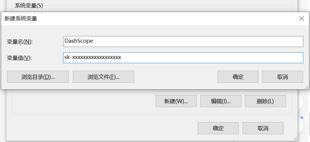 当我们获取了通义千问大模型的 api_key 之后,为了保密和调用方便,可以将其配置到环境变量。