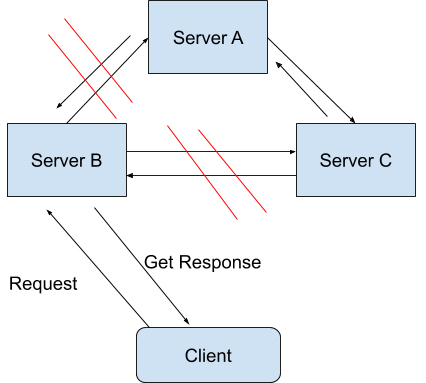 如图所示,如果你要的数据只在Sever A中保存,当系统出现分区错误,在不能直接连接Sever A时,你是无法获取数据的。我们要“分区容错”,意思是即使出现这样的“错误”,系统也需要能“容忍”。也就是说,就算错误出现,系统也必须能够返回消息。