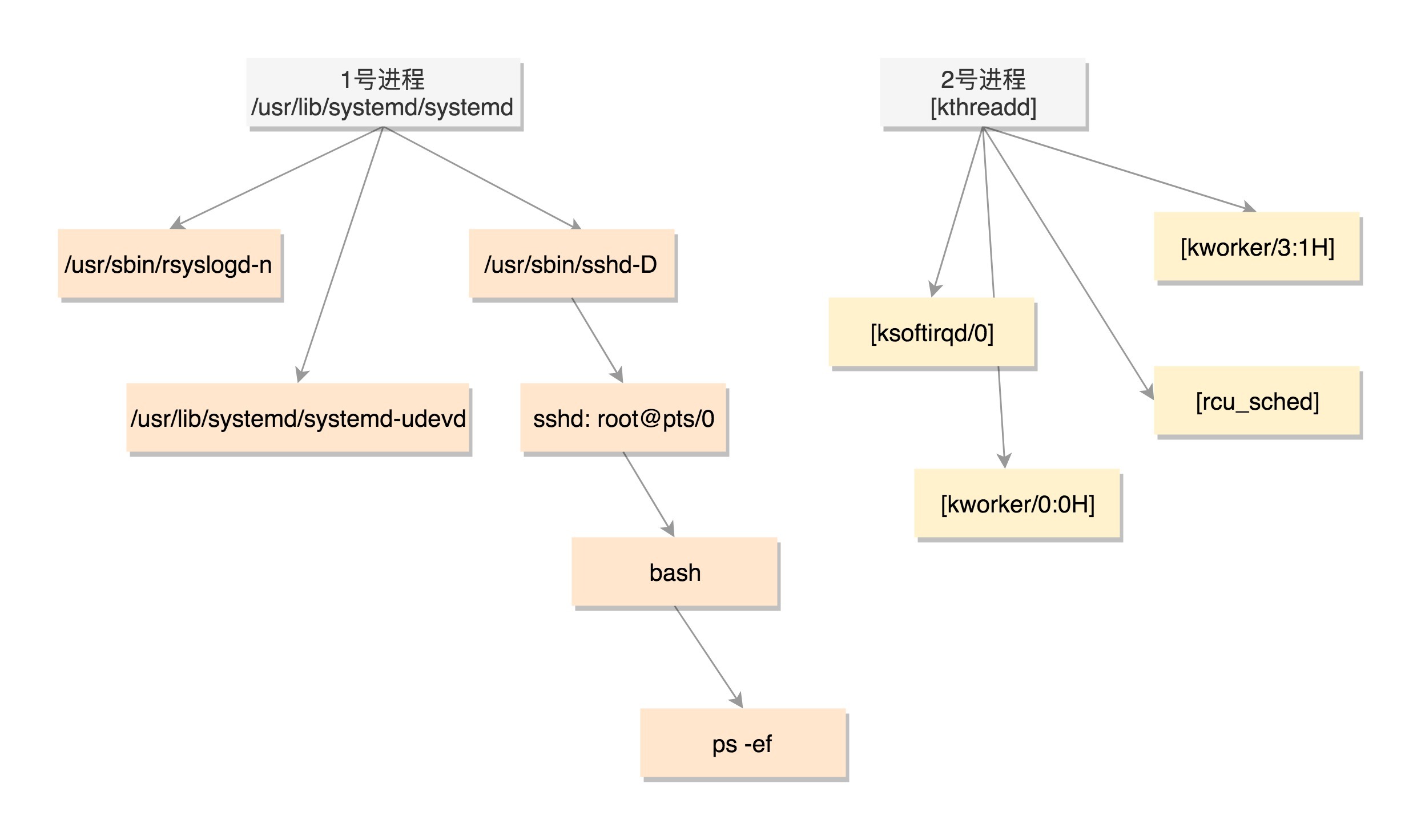 下午,张昭也来到了公司,小马拜托张昭做的第一件事情是调用kthreadd运行2号项目(进程)。这个2号项目是内核项目的祖先。将来所有的项目都有父项目、祖先项目,会形成一棵项目树。公司大了之后,周瑜和张昭做的公司VP级别的任务,就可以坐在塔尖上了。