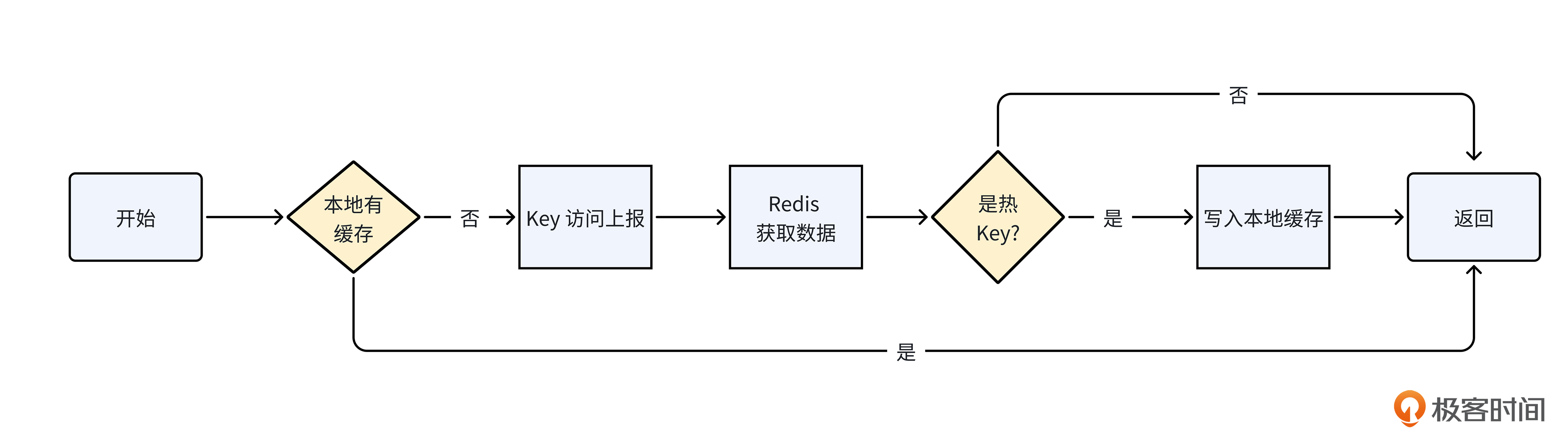 为了让你有个直观的感知,下面的图里,我给出了服务端接入热Key探测之后的Redis访问流程图,供你参考。