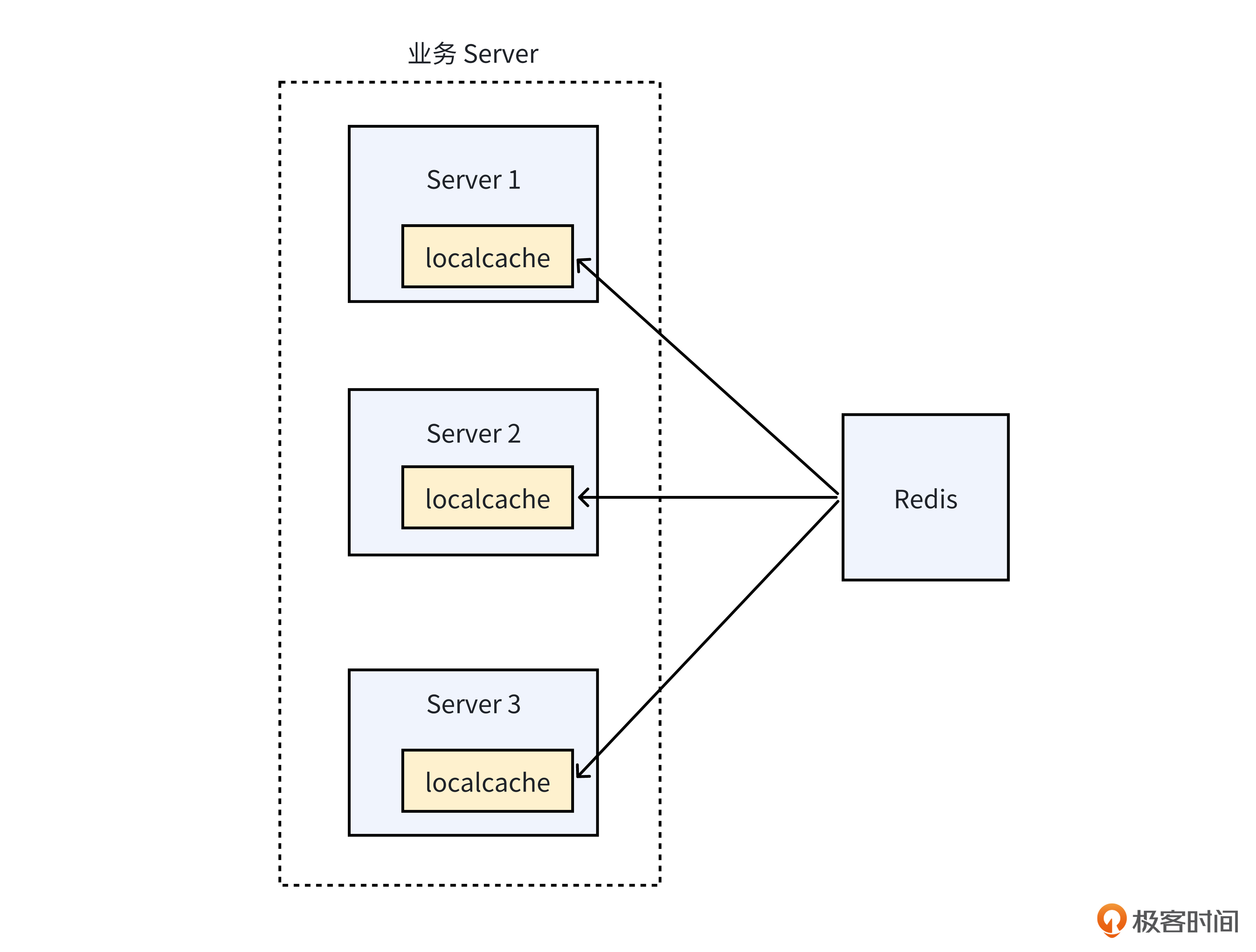 对于业务层的方案,最为简单的是服务本地缓存全量数据的方案。也就是在服务的各个实例内存中,把所有数据都缓存起来。这样当请求访问时,就可以直接从服务实例的本地缓存中获取数据,而不用请求Redis,防止发生热 Key 问题。