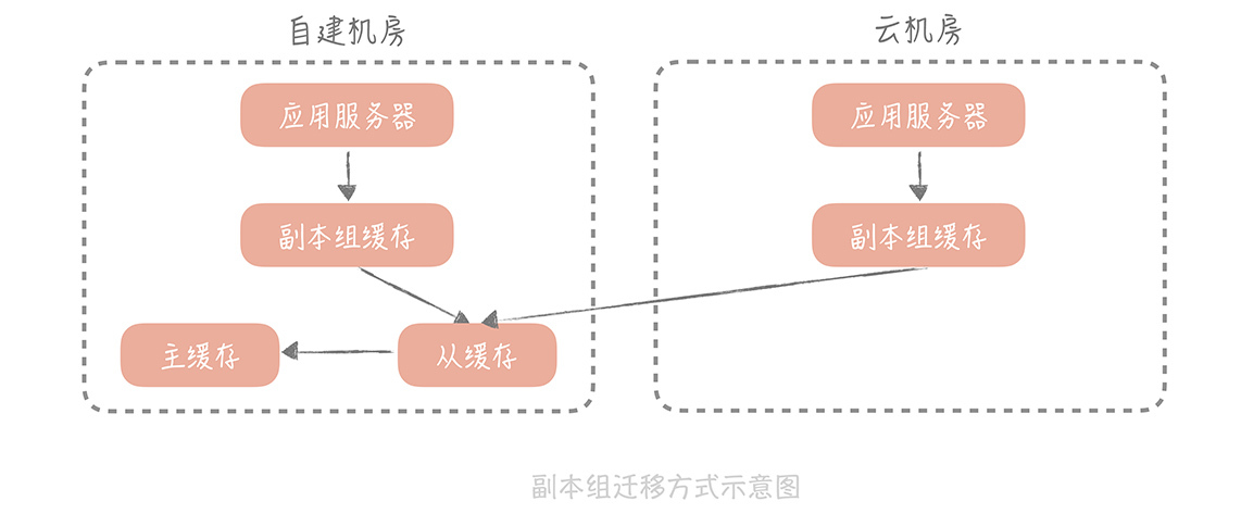 当云上部署的副本组足够热之后,也就是缓存的命中率达到至少90%,就可以将云机房上的缓存服务器的主从都指向这个副本组,这时迁移也就完成了。