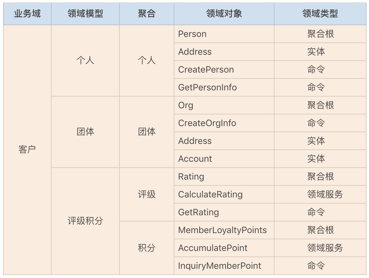 传统核心和互联网电商客户领域模型重构成客户中台后,建立了个人、团体和评级积分三个领域模型。其中个人领域模型有个人聚合,团体领域模型有团体聚合,评级积分领域模型有评级和积分两个聚合。这些领域模型的领域对象来自原来的领域模型,但积分评级是重组后的领域模型,它们原来的聚合会带着各自的领域对象,加入到新的领域模型中。