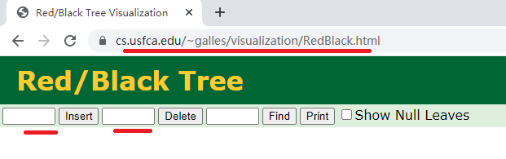 这里我将通过观察到的一些现象来总结一下红黑树插入节点后的平衡性调整操作,从而总结出一些规律,而后根据这些规律来编写代码。为了能够观看到红黑树插入一个节点后的平衡性调整,你可以通过搜索引擎搜索“可视化数据结构算法演示”字样,会发现一个“可视化数据结构算法演示 - Data Structure Visualization”的链接,点击后会出现一个页面,点击页面中的“Red-Black Trees”链接,会跳转到图1所示的页面。