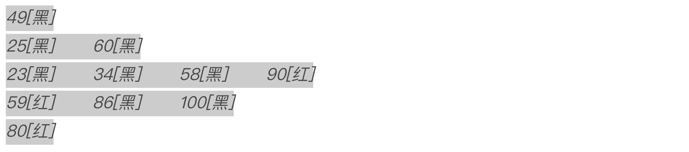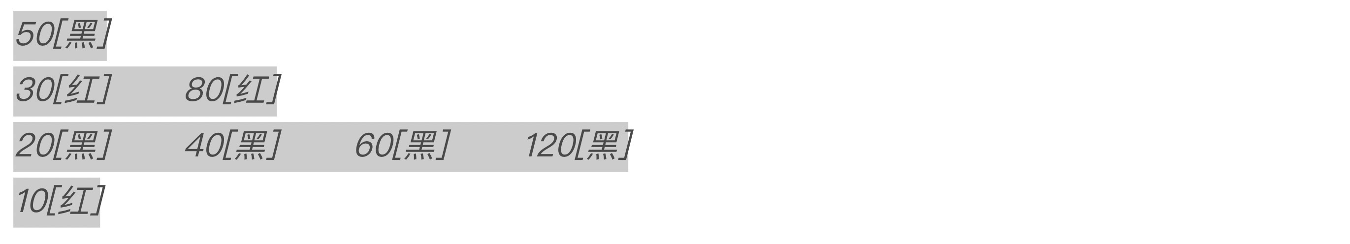 从图5不难看到,调整完成后,产生的结果二叉树高度满足二叉树的要求,红色节点也不再相邻,但事情到这里没完。