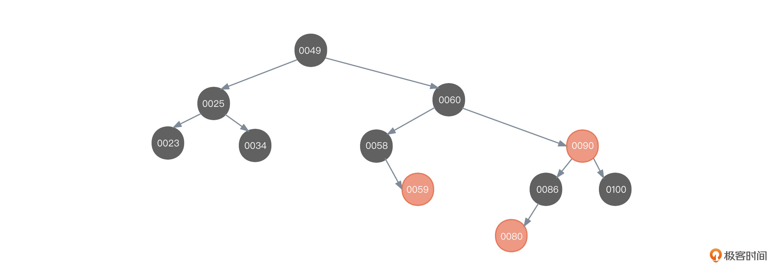 - 将原来的50节点变黑,将原来的80节点设为红色。
