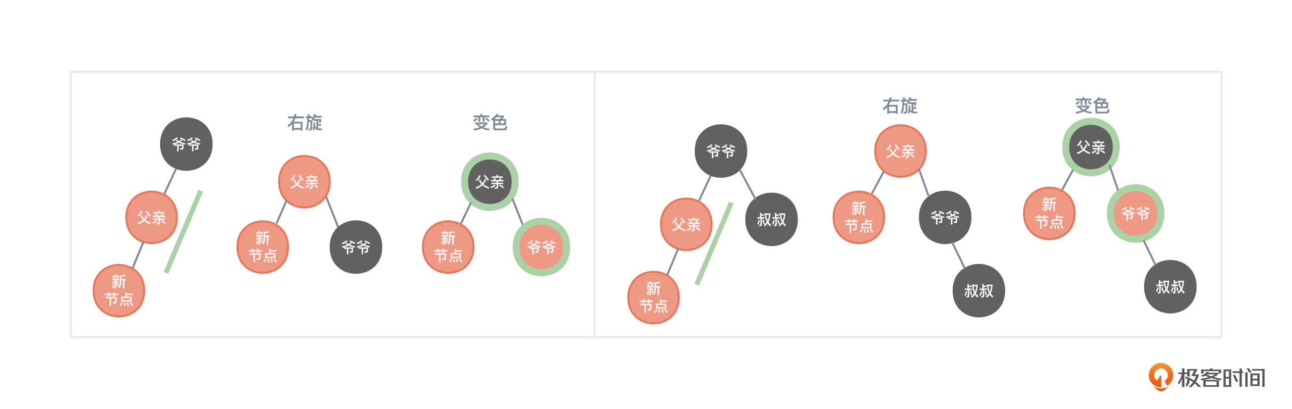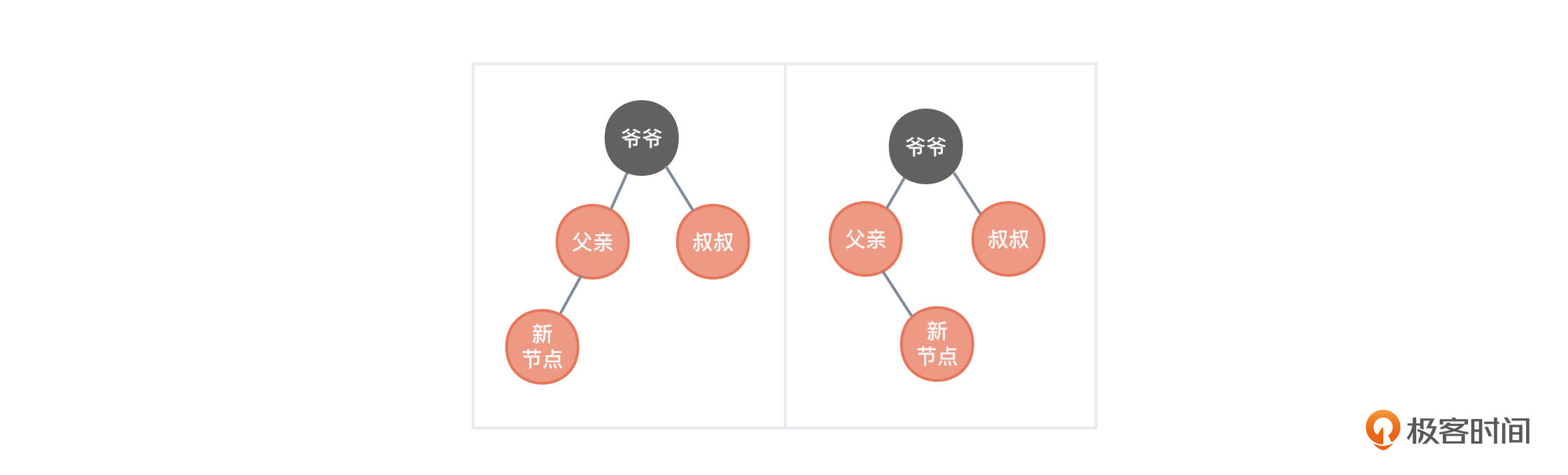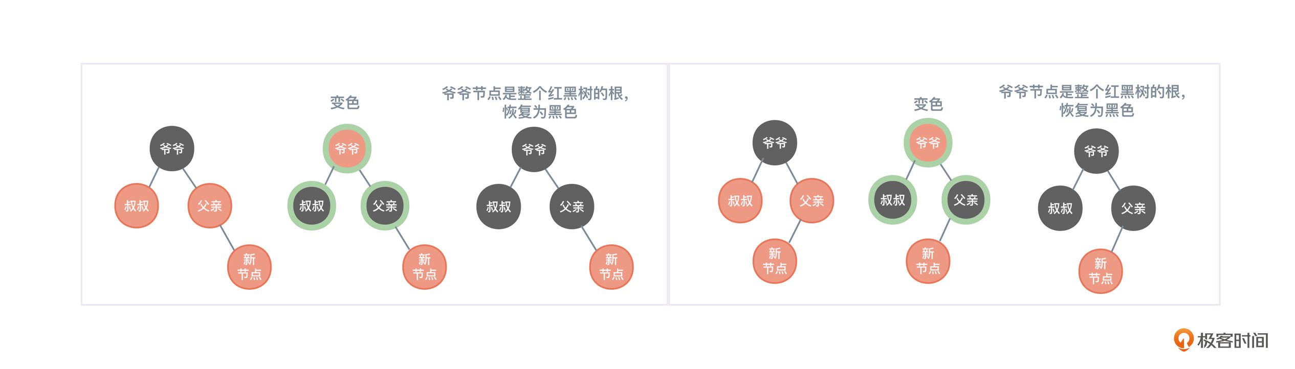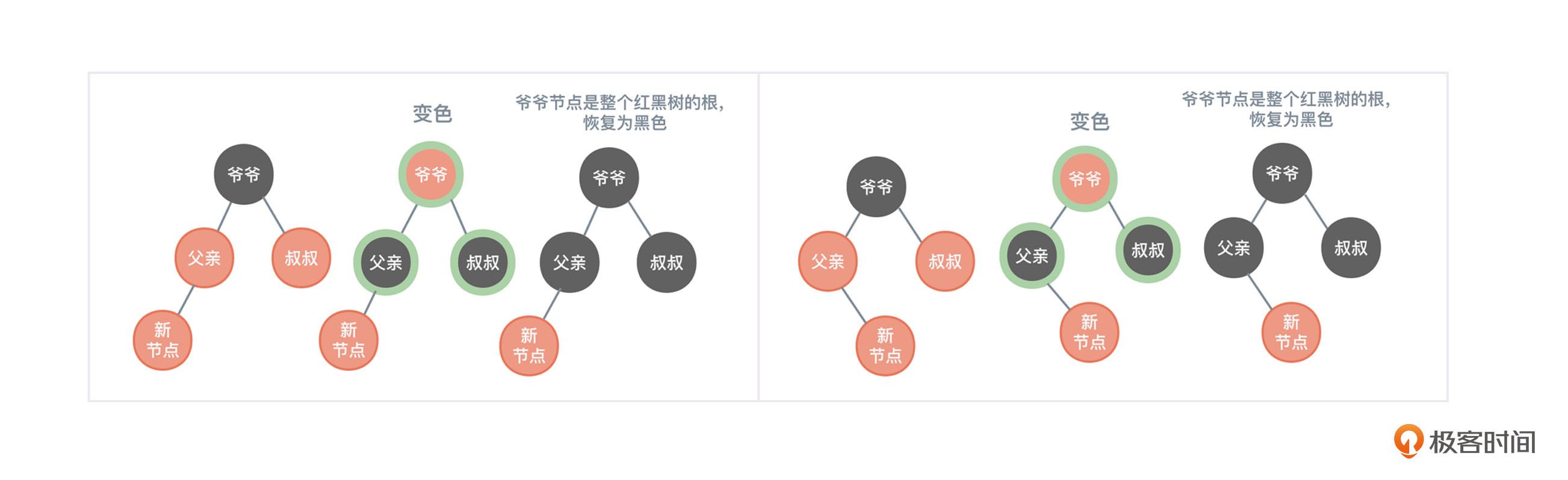 观察图4,父亲节点是爷爷节点的左孩子,叔叔节点存在且为红色。