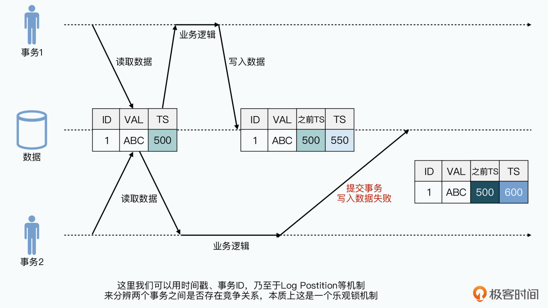 我们在提交事务的时候,需要指定一个时间戳,而不是让每一行的数据更新都使用当前的时间戳。然后我们在读取数据的时候,只需要找到最后成功提交的事务的时间戳,我们读取这个时间戳版本的数据,就是最新的版本。