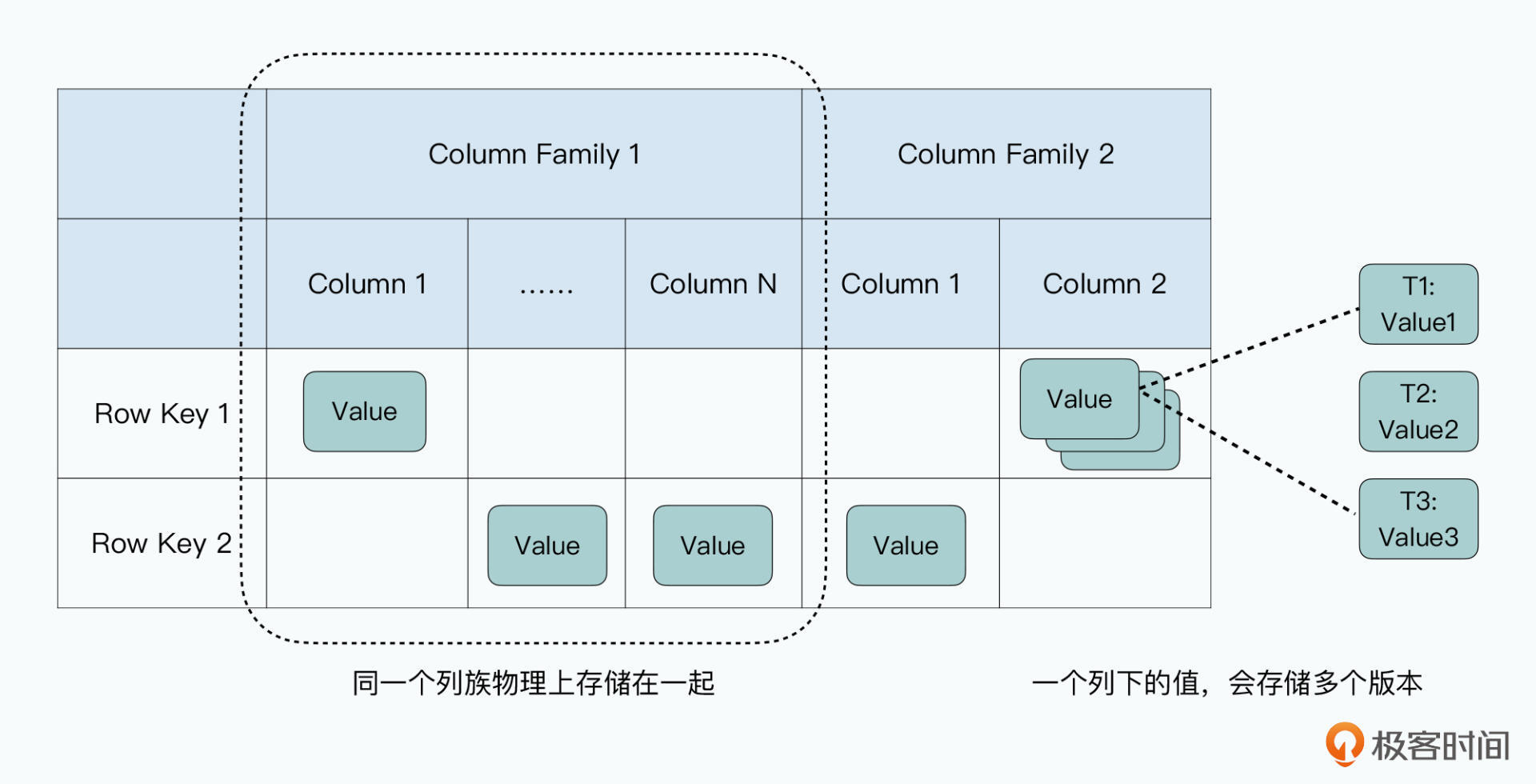 其实只要观察一下上面的这个示例Schema,在Bigtable内是如何存储的,你自己就能得出答案。