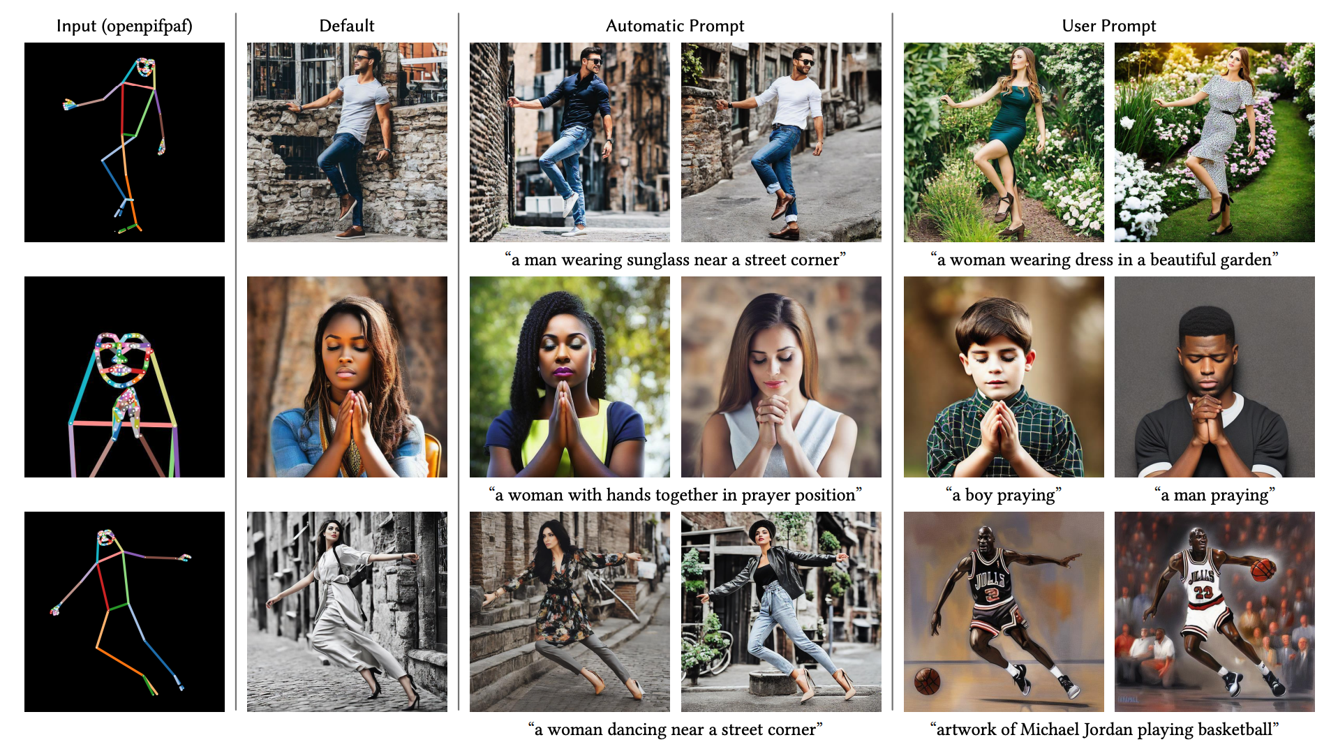 事实上,ControlNet可用的控制条件还远不止这些。比如后面这些图,展示的就是使用HED边缘、人体姿态点、图像分割结果作为控制条件,配合上各种不同prompt生成的图像效果。