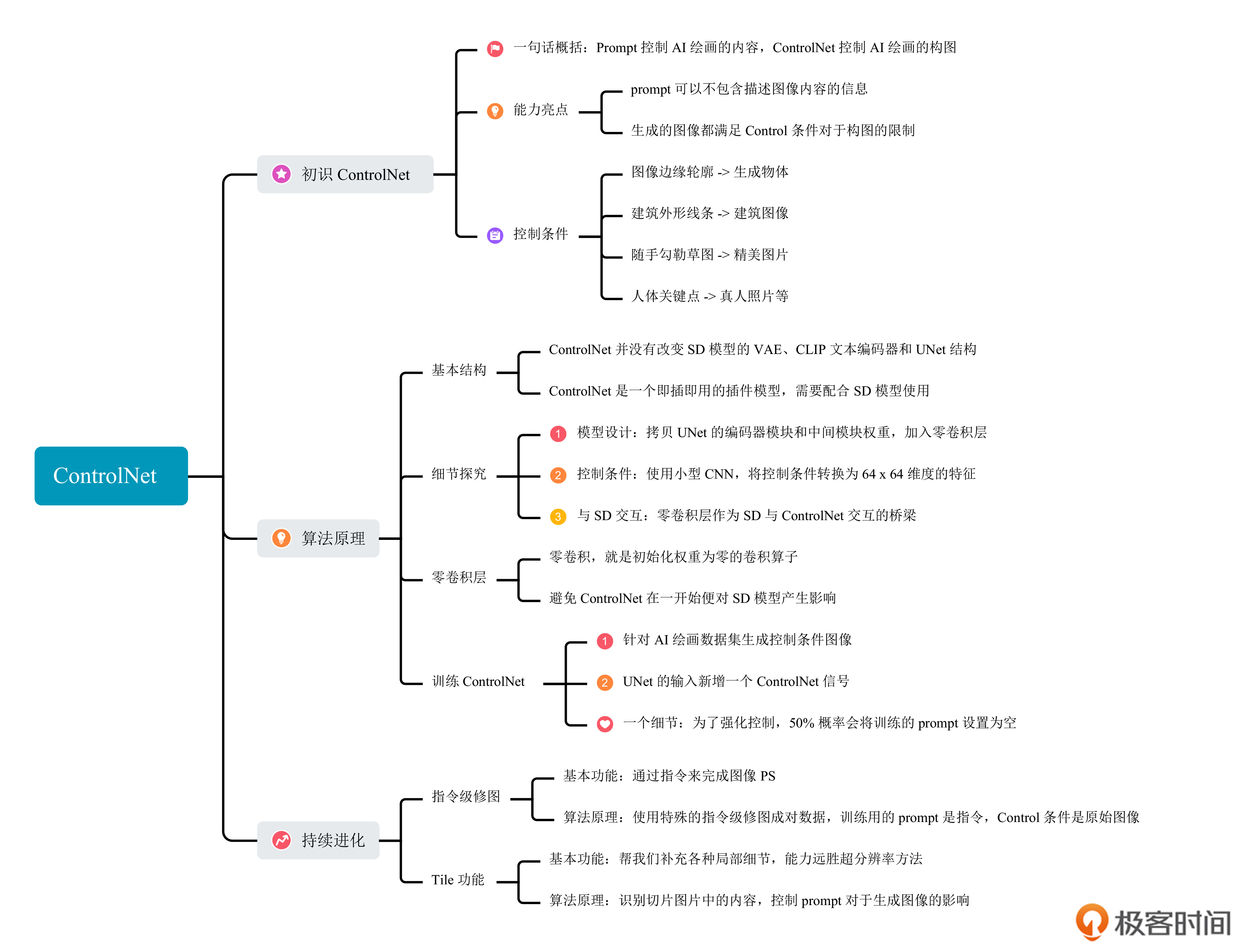 今天这一讲我们探讨了ControlNet这个强大的AI绘画工具,包括它的算法原理、控图效果和最新能力。