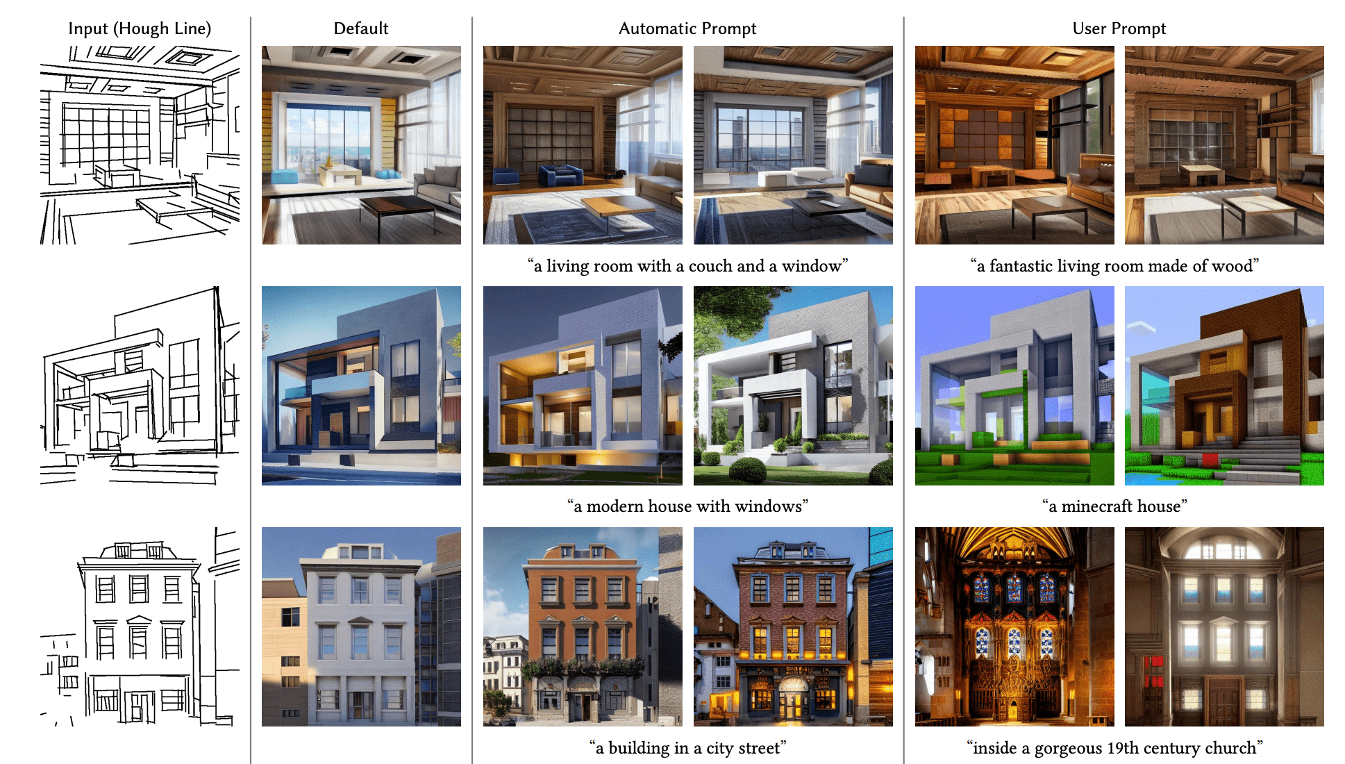 类似地,我们可以提供建筑的外形线条,通过简单的prompt引导,得到各种风格迥异的建筑效果图。