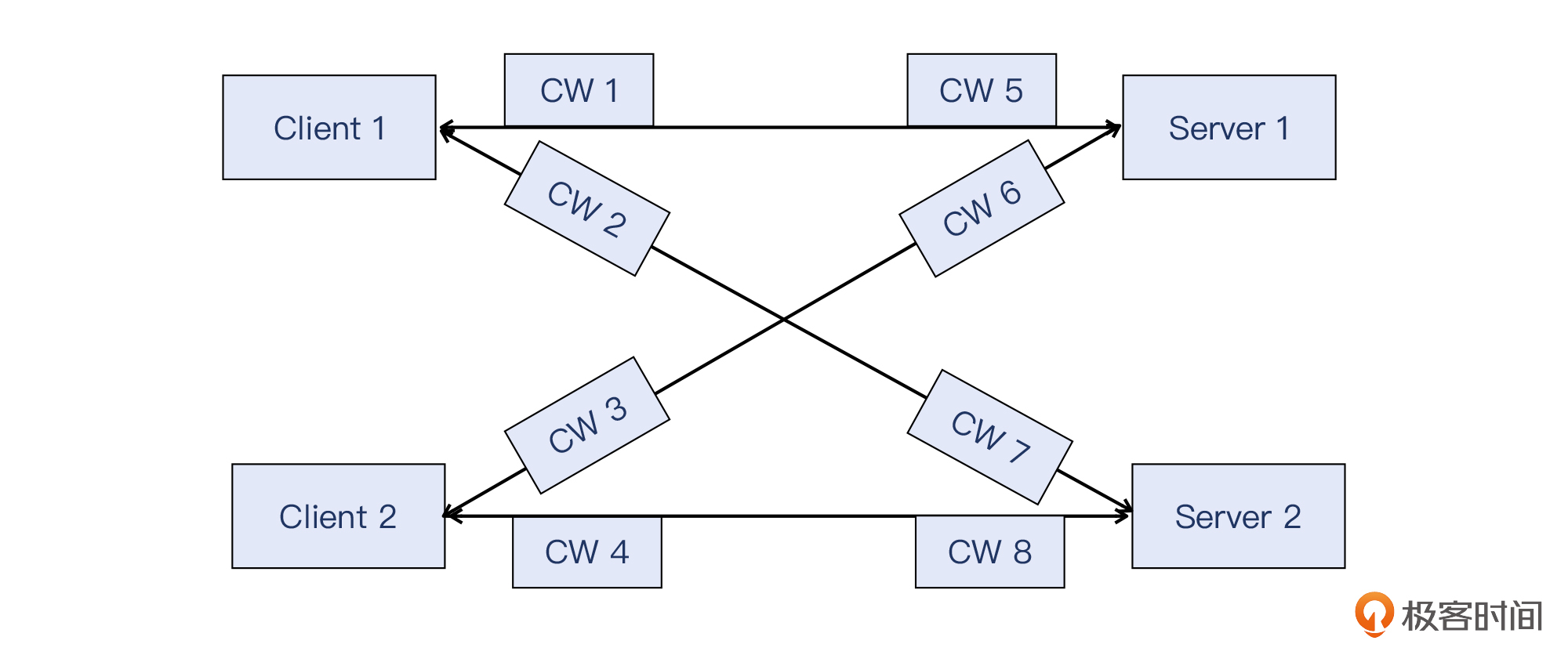 下图中,我用CW指代拥塞窗口,图中CW1到CW8都是各自不同、独立维护的拥塞窗口: