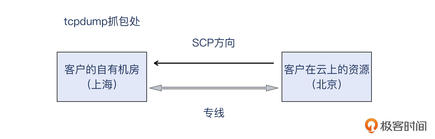 在公有云服务的时候,我们有个银行的客户,他们有一次需要跨机房拷贝一个大文件,也就是用SCP命令,把文件从公有云机房拷贝到他们的自建机房。但是客户发现速度比较慢,让我们看一下原因。