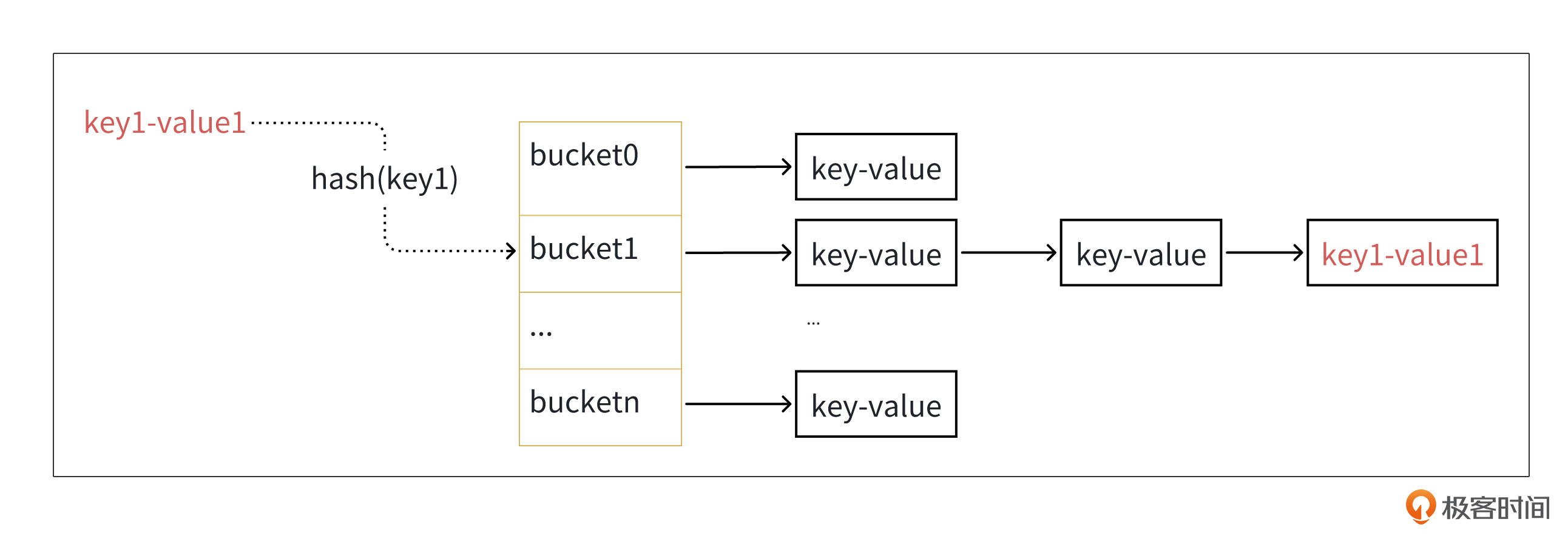 正常情况下,当往map中写入ket-value对时,Go底层会根据key做hash,定位到需要写入key-value对的桶,并插入桶对应的链表中。