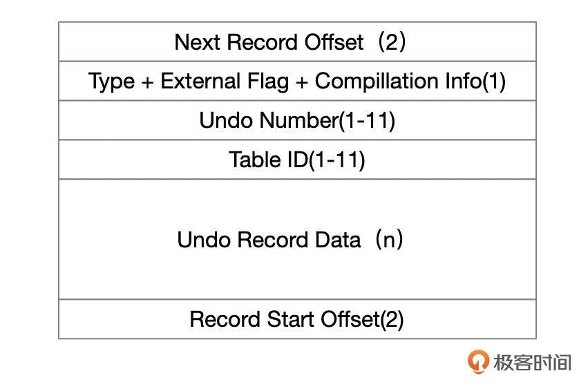 Undo记录也有一个固定的格式,每一条Undo记录的开始和结束的地方,保存了相邻记录的地址。