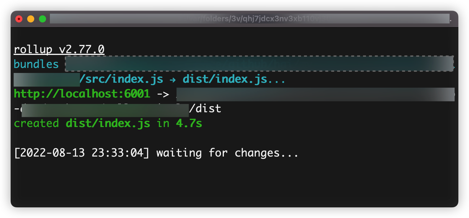 - 再次修改代码,Rollup监听到源码变化,再整体重新编译代码。