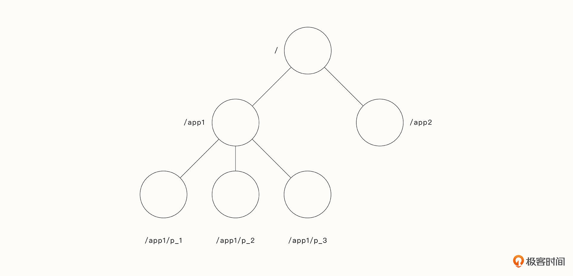 这些服务通常具有友好的API设计,在这里我以ZooKeeper为例来说明分布式协调服务的使用场景。如下图,ZooKeeper的数据模型类似于Unix文件系统,其中,Znode是客户端通过ZooKeeper API处理的数据对象,Znode以路径命名,通过分层的名称空间进行组织。