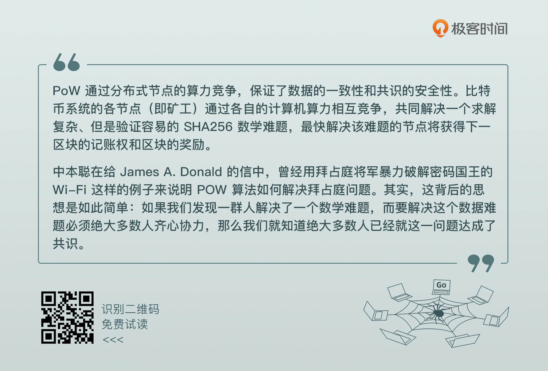 最后我们还提到了无信网络中面临的拜占庭问题。由于攻击者的存在,达成共识异常困难。而比特币提供的PoW算法实在是划时代的解决方案。
