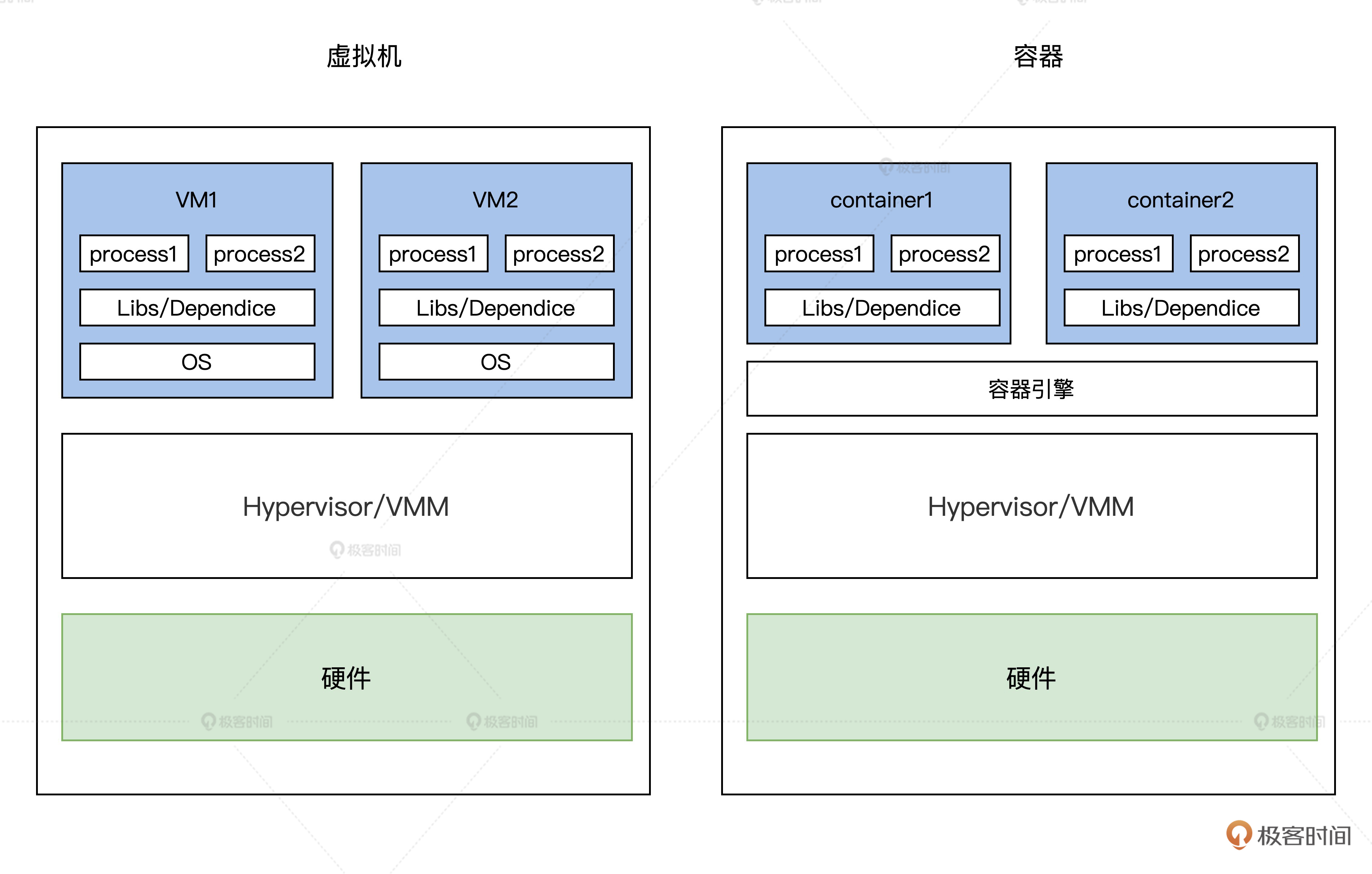 这节课我会先带你理解容器的概念,然后把它跟虚拟机作比较,之后为你讲解容器的基础架构跟基础技术,虽然这样安排有点走马观花,但这些内容都是我精选的核心知识,相信会为你以后继续探索容器打下一个良好的基础。