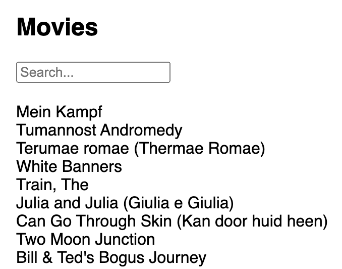 举个例子。你要做一个功能,需要对一个列表的结果进行关键字搜索,我们假设是一个显示电影标题的列表,需要能够对标题进行搜索。最终的效果如下图所示: