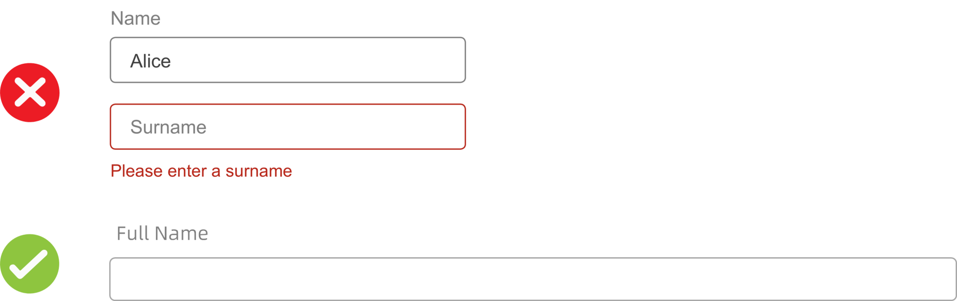 多语言背景下的人名也需要注意。欧洲标准的名字一定要区分Last Name和First Name,分别用两个表单填写。或许这种填写方式对应到我们的姓氏和名问题不大,但是在印度尼西亚,大多数爪哇人都只有一个名字。而在马来西亚,通常会有三个名字构成一个人的身份。所以正确的做法是在这些国家里,仅用一个允许长字符输入的表单即可。