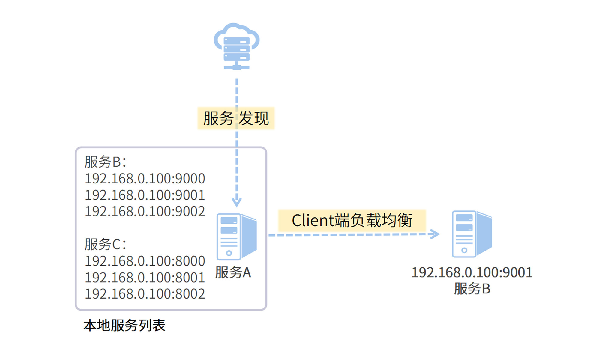 不过呢,如果想要应用客户端负载均衡,那么还需要满足一个前置条件,发起服务调用的客户端需要获取所有目标服务的地址,这样它才能使用负载均衡规则选取要调用的服务。也就是说,客户端负载均衡技术往往需要依赖服务发现技术来获取服务列表。